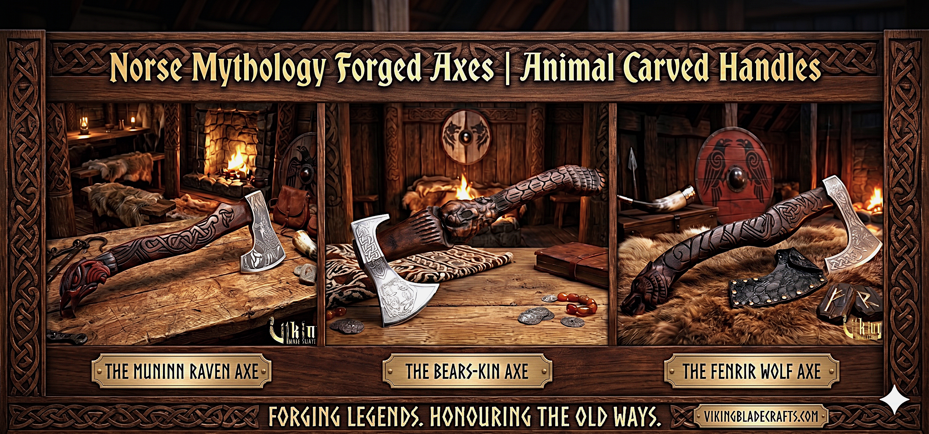Chosen by warriors. Forged to endure.Signature Norse Mythical Carved Animal Axes