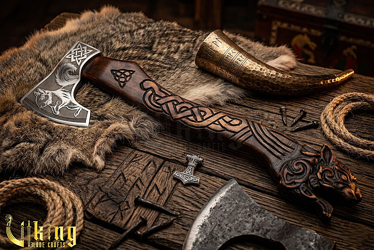 Fenrir Series Viking Axe | Intricate Wolf Handle | Hand-Forged Steel